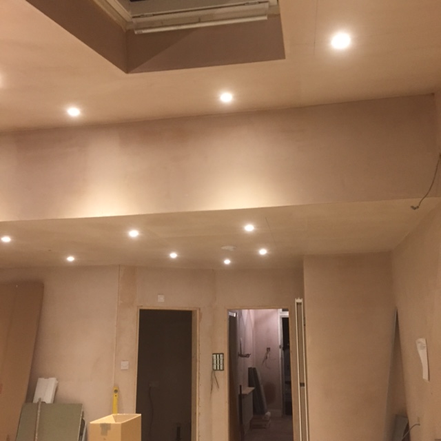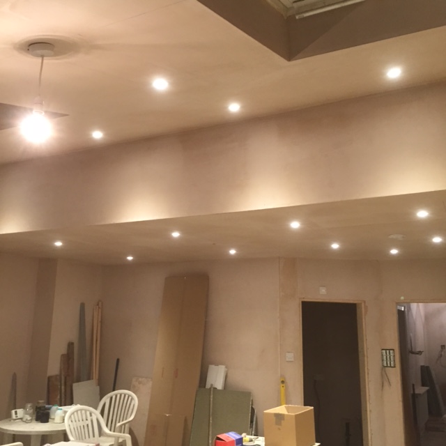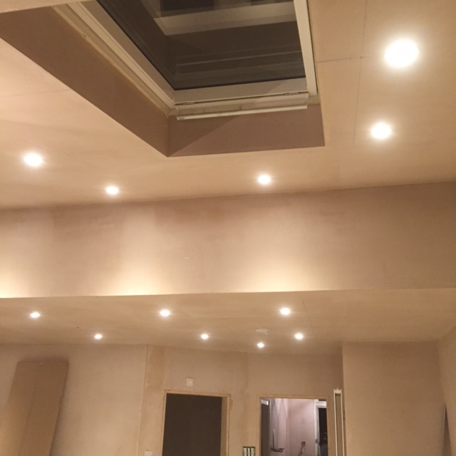 We completed work in a large extension to install downlighters
